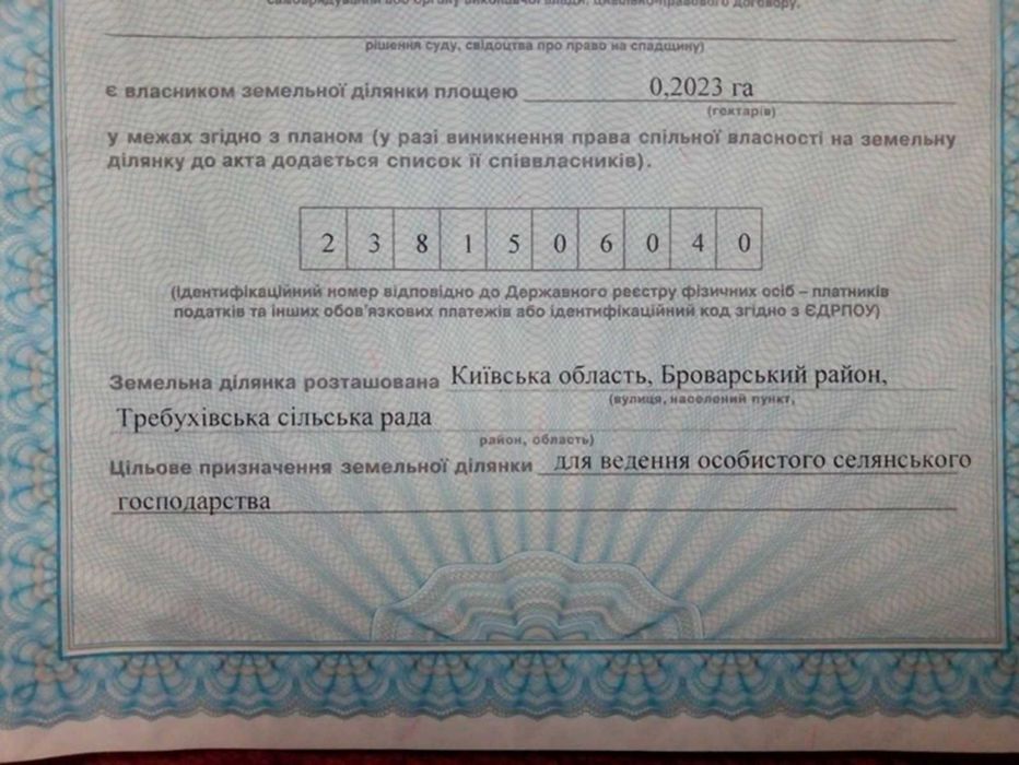 продам землю Київська область Броварський район село Требухів