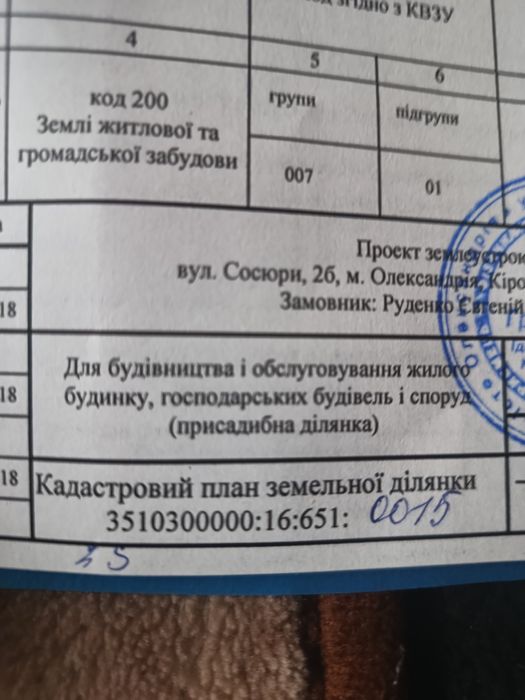 | Земельна ділянка: |