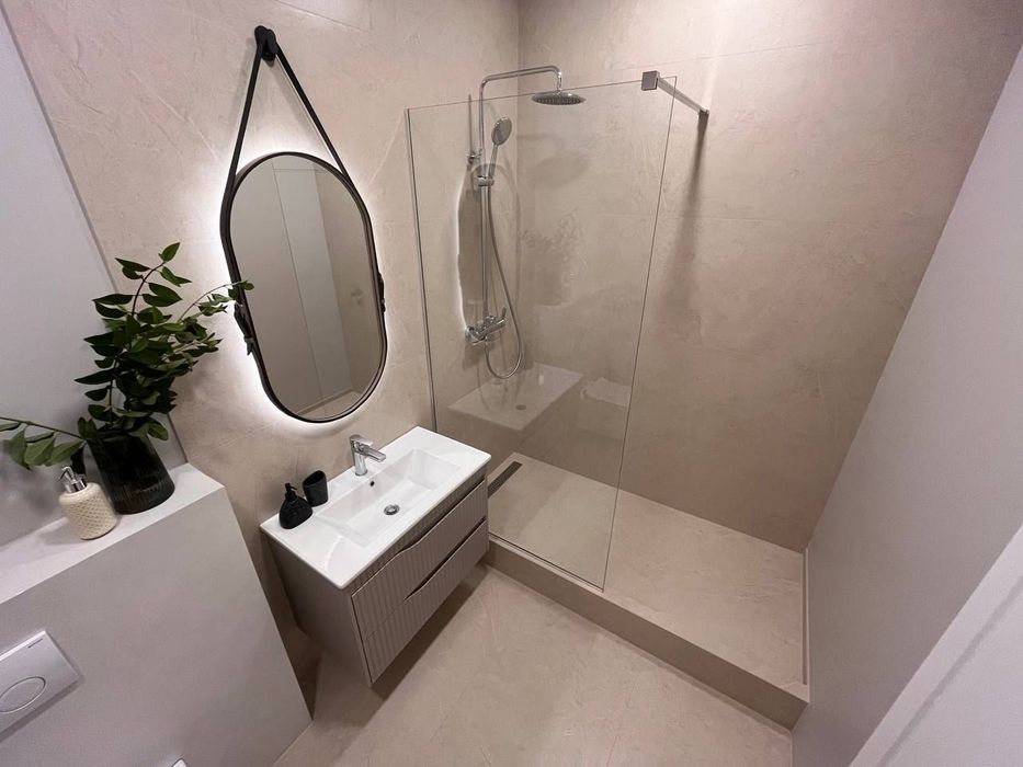 У санвузлі - велика, зручна душова кабіна, тепла підлога, пральна машина.