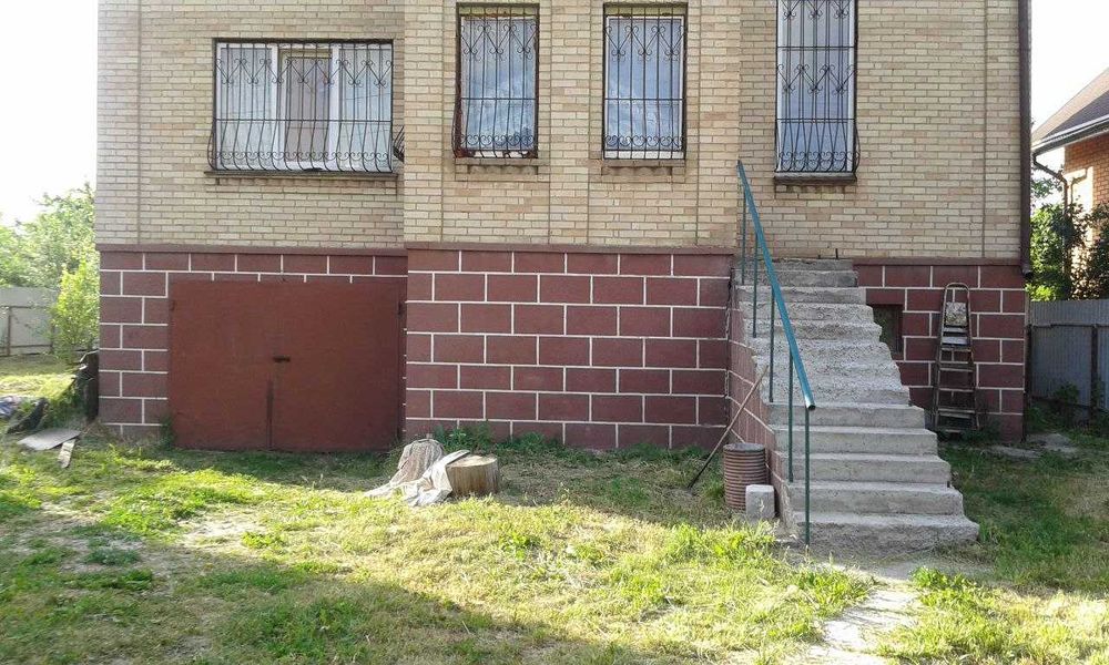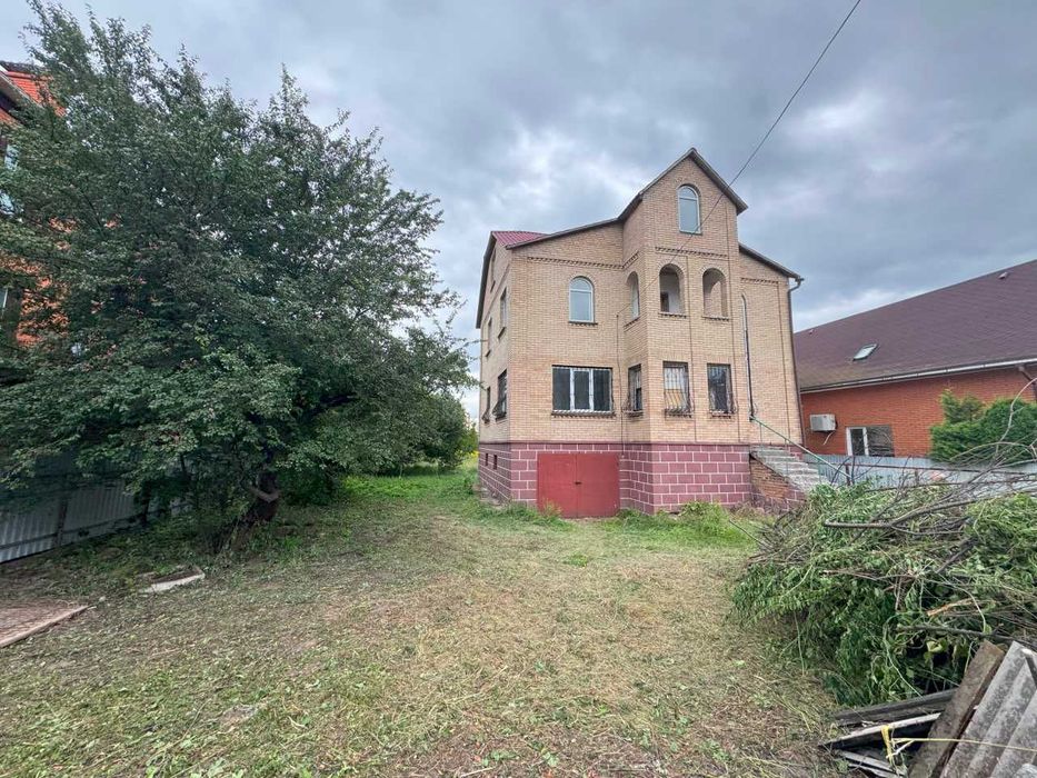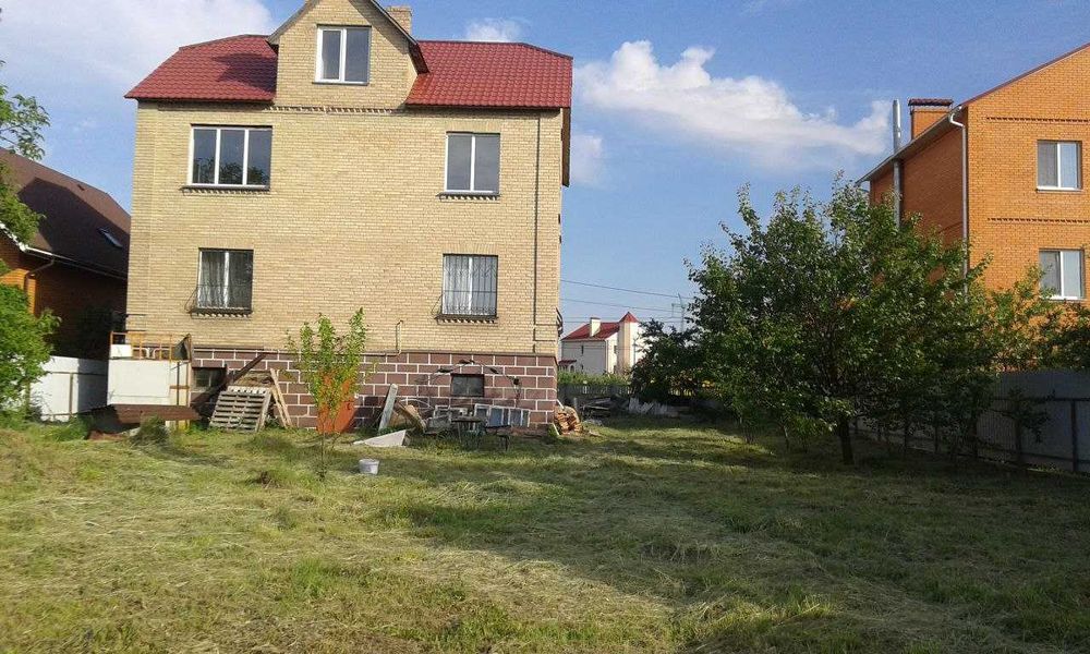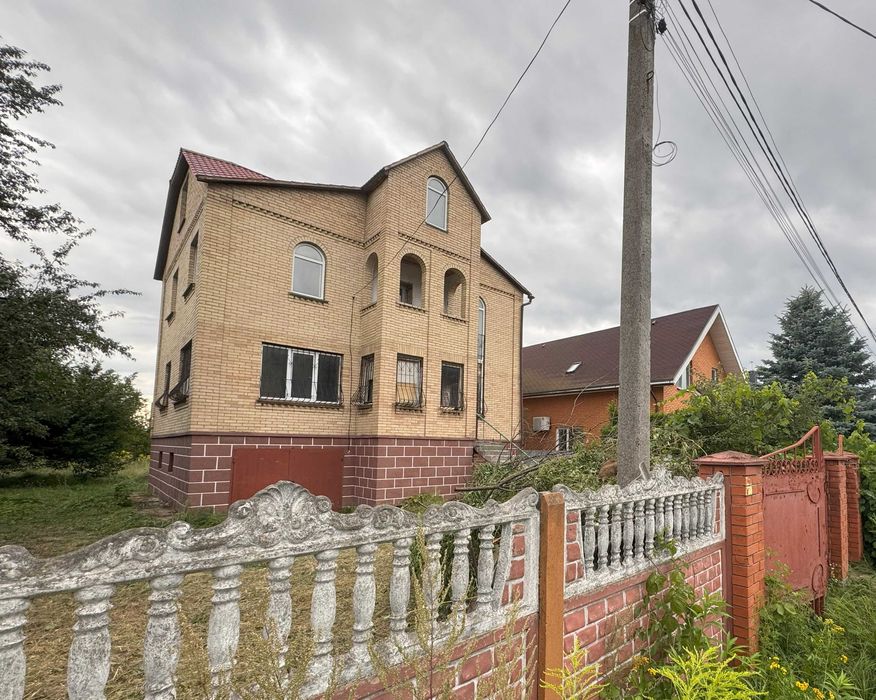 Площа будинку становить 255,4 кв. м., земельна ділянка – 10 соток . Дім має два поверхи, цокольний поверх та мансарду. Гараж в цокольному поверсі. Стіни з цегли, будинок без оздоблюваних робіт, тільки оштукатурені стіни та стяжка на підлозі. Криниця, електрика розведена по будинку, газ по вулиці. Рік побудови - 2004. Відстань до метро Теремки 5 км.