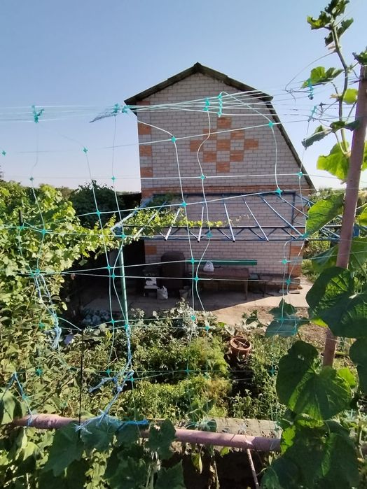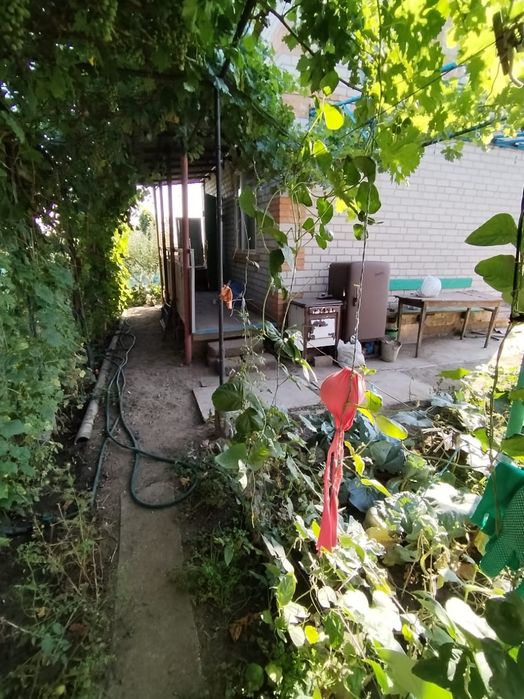 Будинок на 2 поверхиз гаражем під будинком.Ділянка подвійна на 2 заїзди.Доглянутий город 10 соток.Вода по графіку 2 рази на тиждень.Єлектрика замінена по вулиці і до будинку.Ємність на 3 куба.Полив розведений ПЄТ трубою.Дровник.Фруктові дерева,виноград,полуниця.Будинок штукатурений.Мет двері.Кухня 9м2,діюча піч.камін,кімната 12м2.на 2му поверсі кімната 15м2.проживали ,в зимку тепло.Закрита,охорняється цілодобово.Боргів немає.Тихий спокійний район,для життя та відпочинку.в межах міста 2 км.По близу немає критичної інфраструктури.