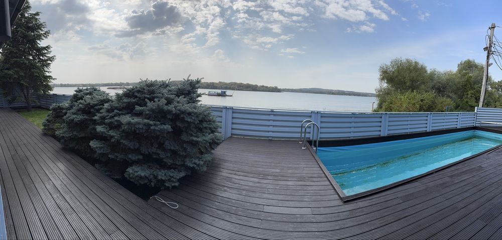 На території будинку є власна велика тераса, з найкращими напевно панорамним видом на Дніпро в околиці, з дизайном та відчуттям що ви на палубі корабля, що створює затишну атмосферу для відпочинку.