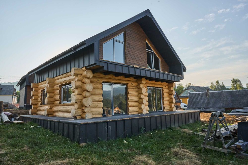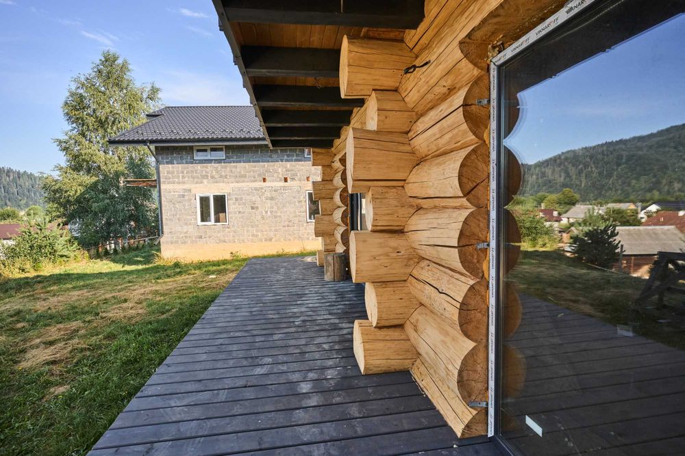 Продам новий будинок у горах с. Микуличин неподалік ГК Буковель; Продається новий будинок у мальовничому с. Микуличин поряд з Буковелем! Розкішний котедж з натурального зрубу, комбіноване каркасне будівництво.