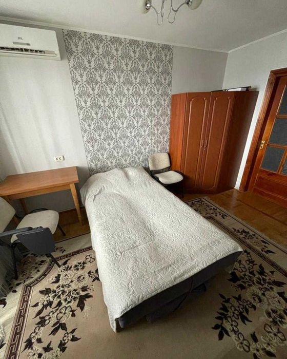 Кімната 17 кв.м . Є двоспальне ліжко-диван, шафа, стіл, стільці.