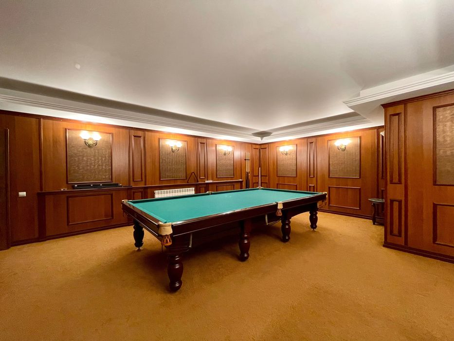 0 поверх - більярд, кінозал з проектором, сауна, джакузі, 2 душові кабіни, санвузол, пральня кімната, гардеробна, котельня, вихід до погребу та на вулицю.