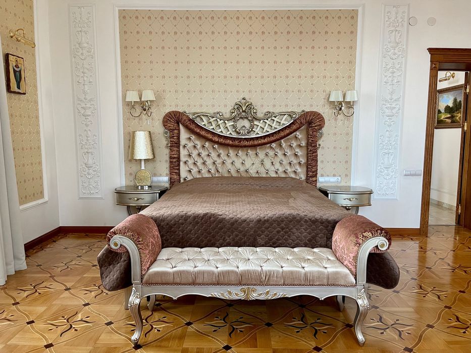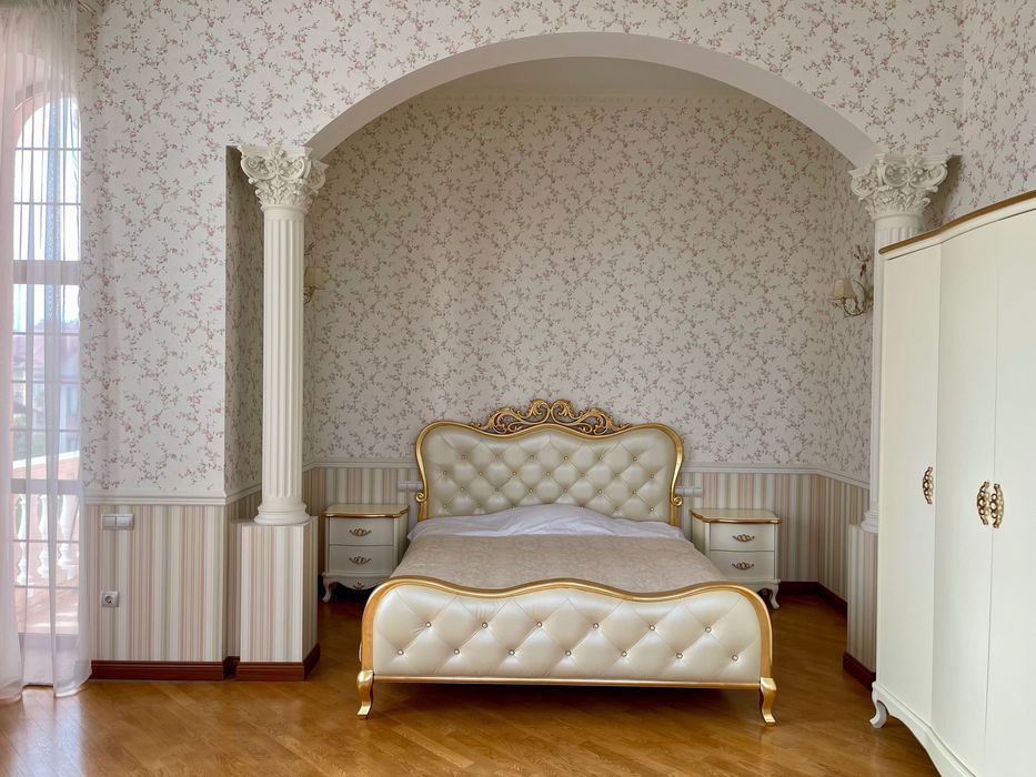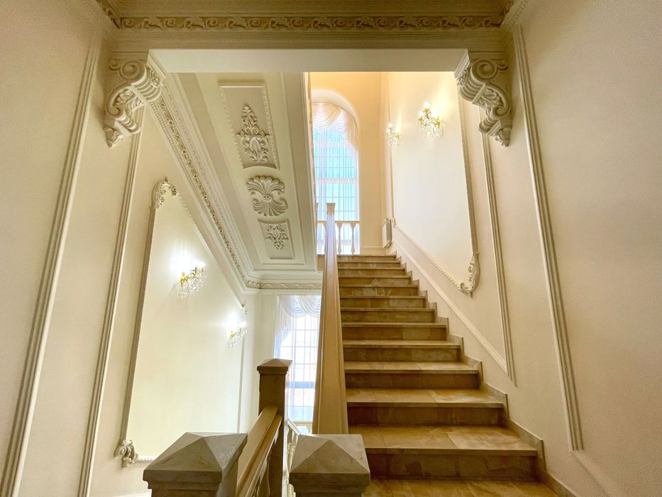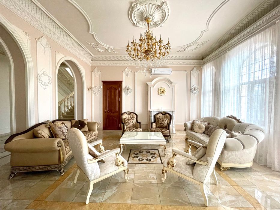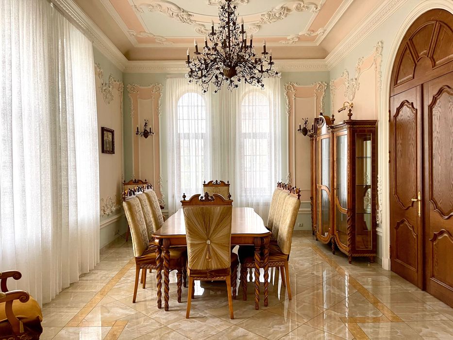 У будинку зроблений дорогий ремонт з використанням сусального золота, мармуру, оніксу, рідкісних порід дерева, оксамиту, шовку, габіленів, кришталю. Ліпнина промальована та вилита під індивідуальне замовлення по зразкам з італійських палаців.