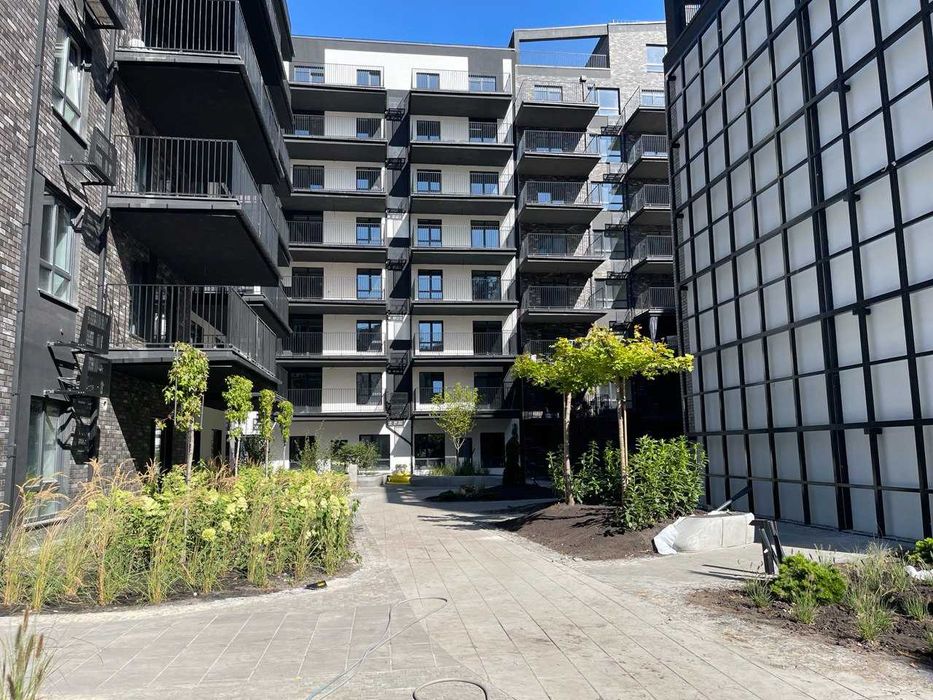 - будинок має внутрішній двір з неповторним ландшафтним дизайном та унікальною стіною з живими рослинами, також розташовані функціональні спортивний і дитячий майданчики (HUGS);