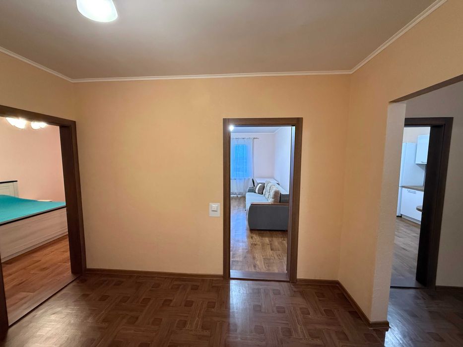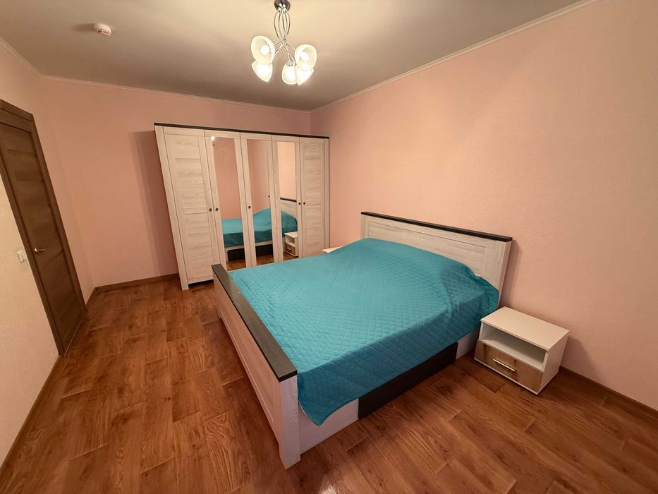 В квартирі зроблений новий ремонт, повністю мебльована (кухня, столи, стільці, ліжко з ортопедичним матрацом 180 на 200 см, двоспальний диван з ортопедичним матрацом, дві шафи, вітальня, передпокій), і дві засклені та утеплені лоджії.