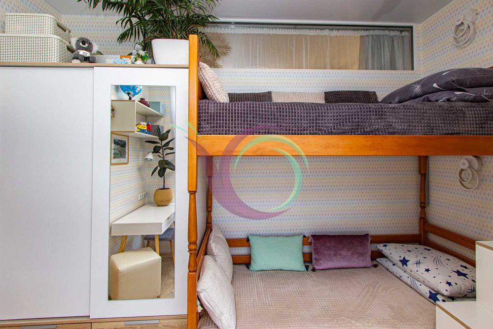 - дитяча/друга кімната з двоярусним ліжком і робочою зоною;