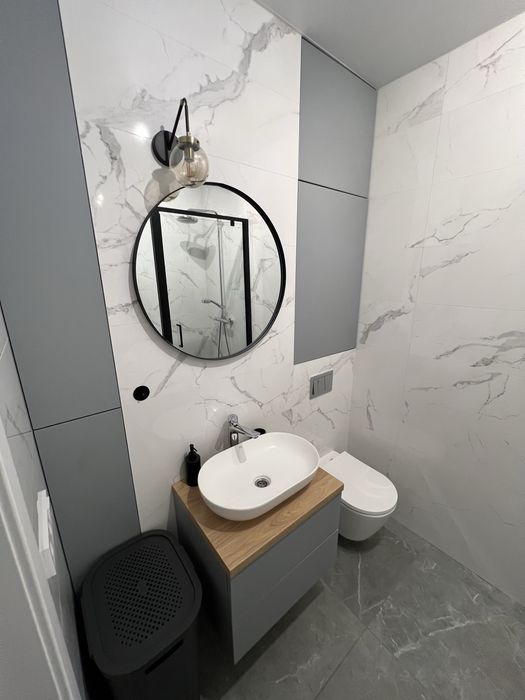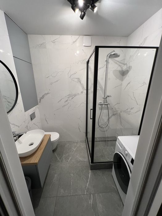 Санвузол з душовою системою, туалет інсталяція, бойлер, вмонтовані меблі, пральна машина, накладна раковина з тумбою, тепла підлога.