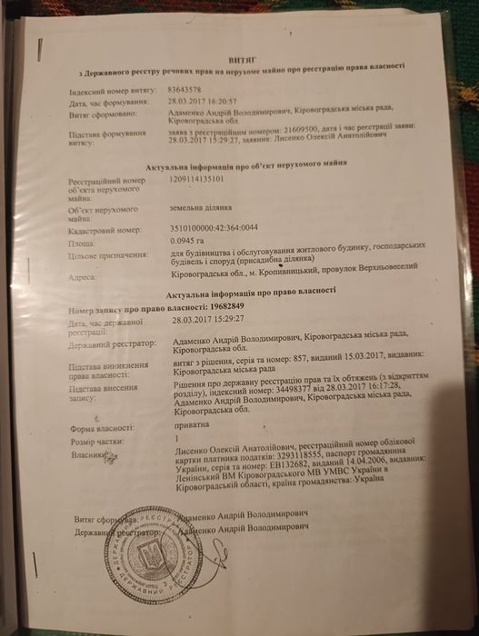 | Земельна ділянка: |