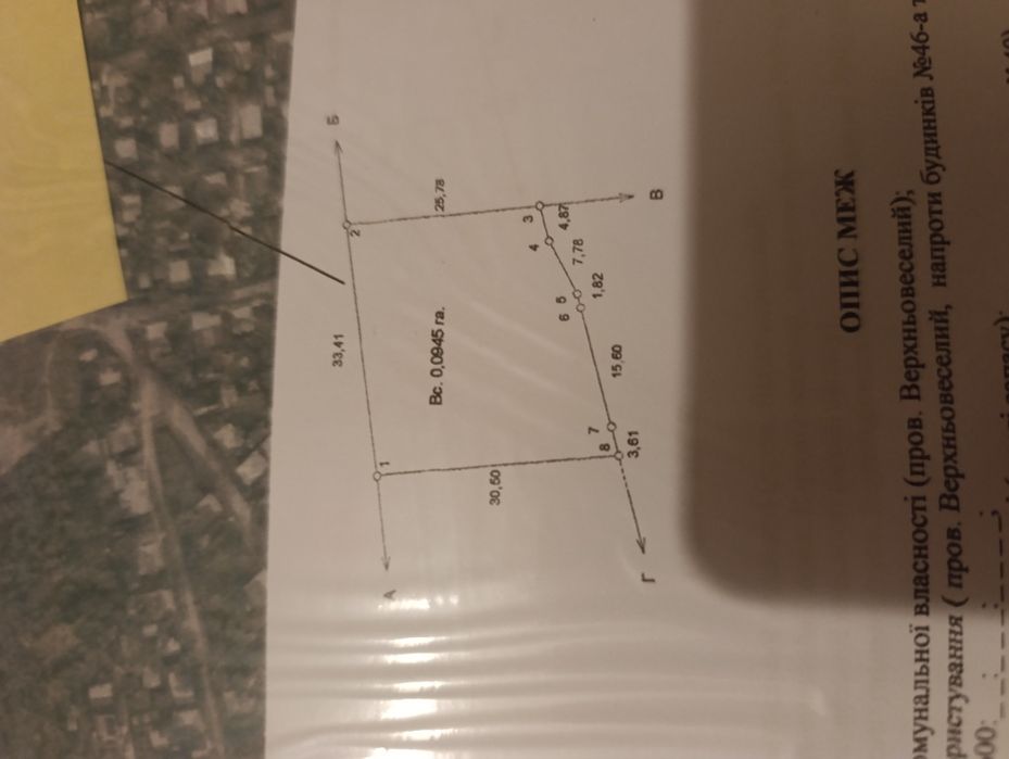 На участке есть деревья.Участок почти ровний.Находится провулок Верхньовеселий 44 б.
