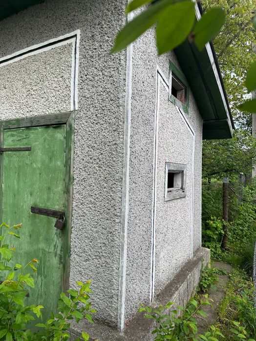На території є будинок 7.35x 4.55 м (потребує ремонту) і підсобне приміщення з септиком.