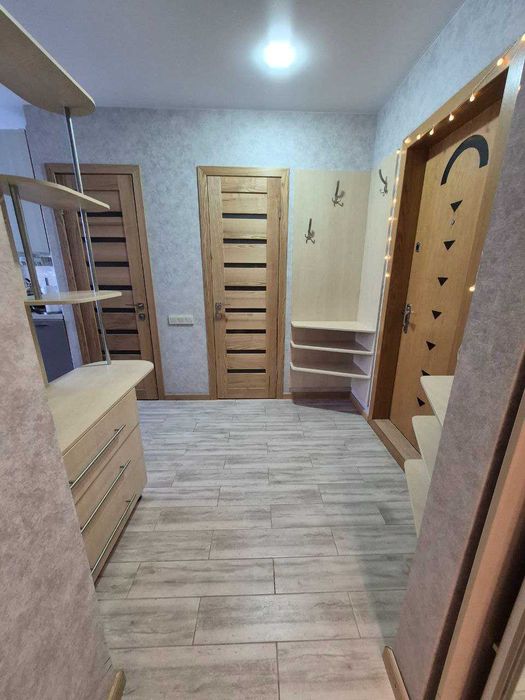 Усі двері із натуральної деревини. В квартирі залишається техніка та меблі.
