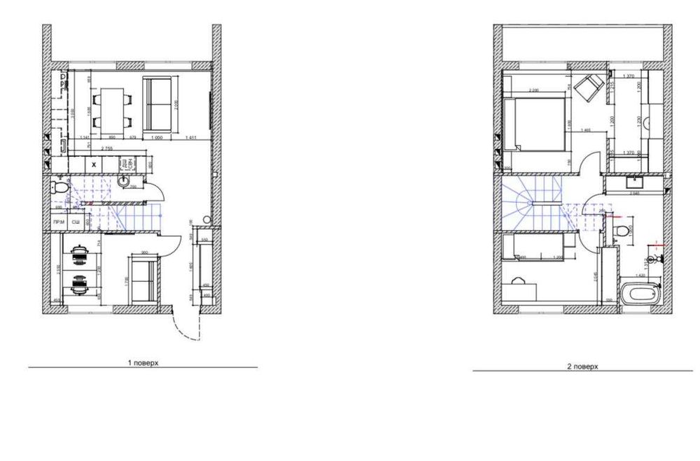 - Тепла підлога: уся площа 1-го поверху, санвузол 2-го поверху