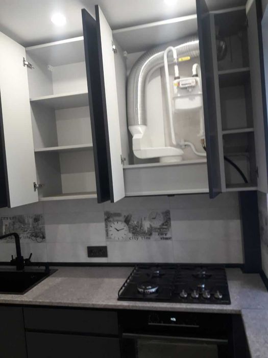 Кухня з якісним євроремонтом, яка не була у використанні. Газова панель, духова шафа, витяжка, холодильник, 2 електричних бойлери, вбудований фільтр для води зі змінними картриджами.