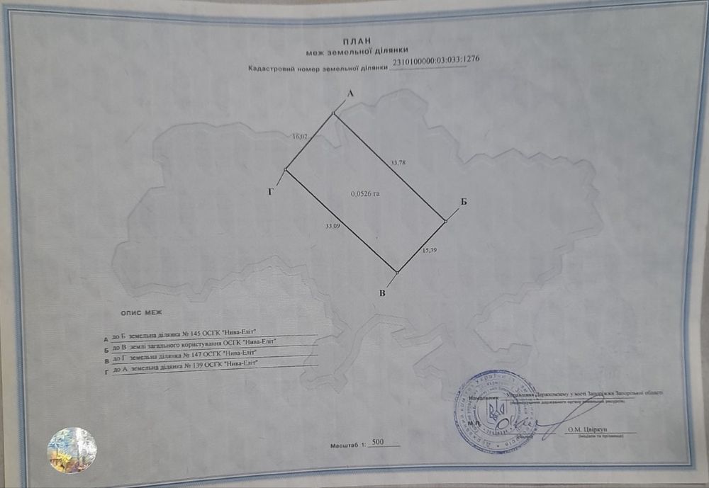 | Земельна ділянка: |