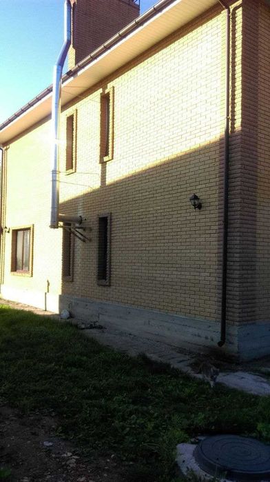Общая площадь дома составляет 288 м² в двух этажах. Дом построен из качественных материалов: пенополистирольный блок с отделкой облицовочным кирпичом, что обеспечивает прочность и долговечность.