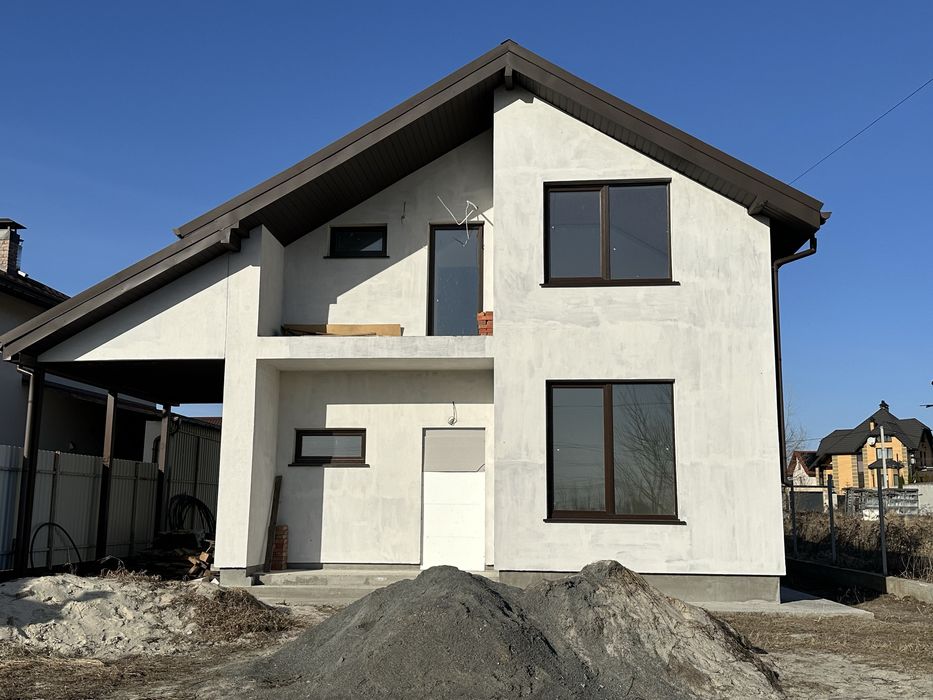 Продам будинок 150 м кв власник; Продам сучасний двоповерховий будинок 150 м.кв. в закритому котеджному містечку «БАЛАТОН» (с. Нові Петрівці). Будинок, 2025 року будівництва, розташований на ділянці 6 соток. Право власності оформлено. Побудований з якісних будівельних матеріалів з використанням сучасних технологій. Наружні стіни - газоблок (30см), внутрішні із червоної цегли, дах із металочерепиці, утеплений мінватою 20 см, додатково сам будинок утеплений пінопластом 10 см. Вікна металопластикові, двокамерні енергозберігаючі. Продумане планування для комфортного проживання сім’ї. На першому поверсі розташована велика кухня-вітальня з виходом у двір на терасу та внутрішній двір, житлова кімната, гостьовий санвузол і душова, велика гардеробна, яку можна переоблаштувати в додаткову кімнату та тех. приміщення. На другому поверсі: 3 просторі спальні одна з яких має вихід на балкон в видом на озеро, гардеробна та ванна кімната. Дім підготовлений під чистовий ремонт, що дозволить облаштувати дизайн за Вашим смаком. Також є накриття для автомобіля, куди виведені електричні розетки. В будинок проведено та розведено сантехніку та електрику по сучасних стандартах, встановлений електричний котел "Protherm" та бойлер на 120 літрів "Drazice". Також є буферна ємність на 1000 літрів, яка забезпечує резерв гарячої води на опалення на тривалий час у випадку відключення світла. Опалення в будинку електричне, але також передбачено альтернативне опалення, встановлений сучасний камін з водяним контуром "Gavryliv&Sons", який обігріває весь будинок. Тепла підлога повністю на першому поверсі. Будинок повністю підключений до комунікацій котеджного містечка: центрального водопостачання, централізованої каналізації, електроенергії (15 кВт). На території містечка розташовані : дитячий садочок ,магазини, зони відпочинку для дітей, кінний клуб. Розвинена інфраструктура навколо містечка в безпосередній близькості. Розташовані: магазини Новус, Фора, аптеки, ресторани, кафе, парк Межигір'я, Сільська рада, Нова пошта, Свято-Покровський собор, Київське море, ліс зупинка громадського транспорту. Відстань до пл Шевченка 12км, до метро «Героїв Дніпра»- 10км