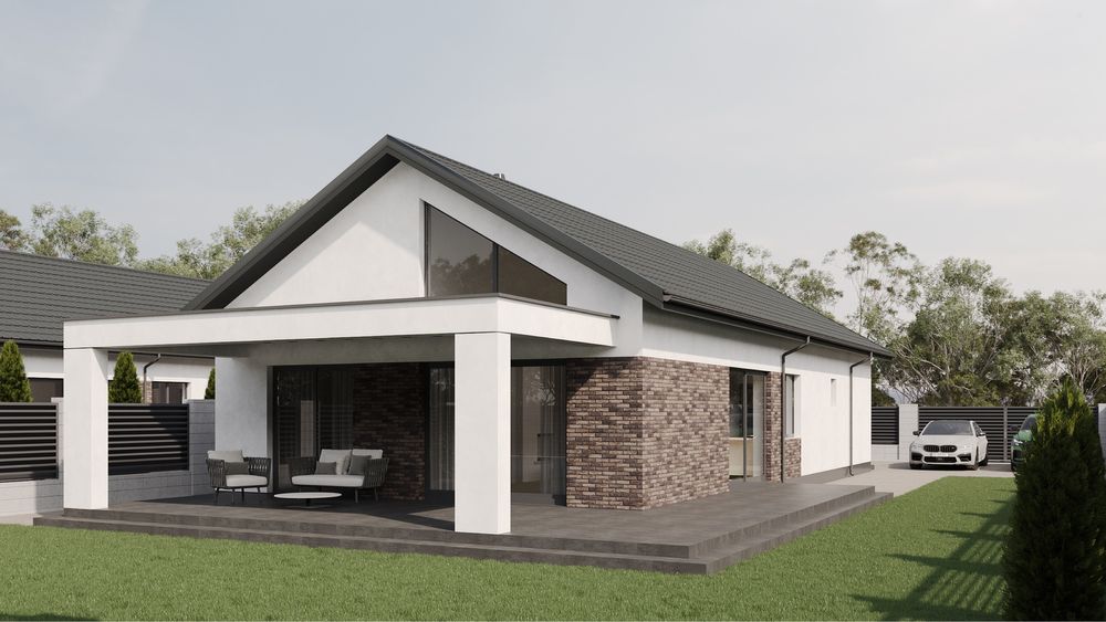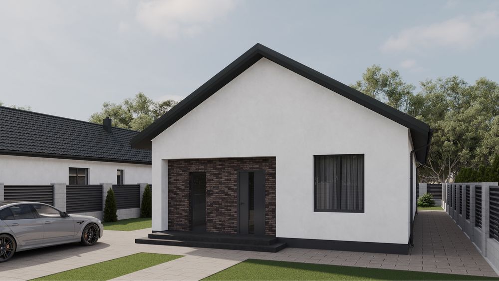 • Фасад: комбінований (плитка + штукатурка “баранець”)