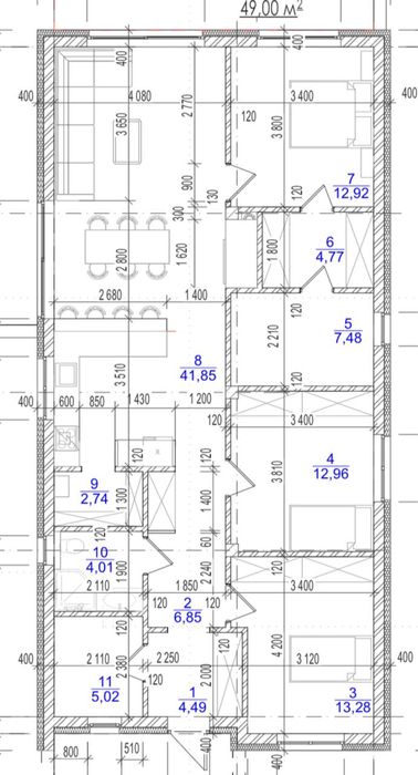 • Кухня-вітальня 42 м² з другим світлом (дуже простора та світла)