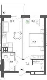 44 м2