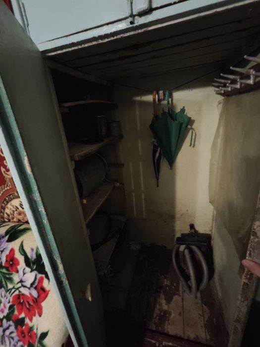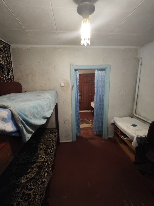 47 квадратних метрів, трикімнатна. Додатково є сарай, літня кухня, погріб, грядки