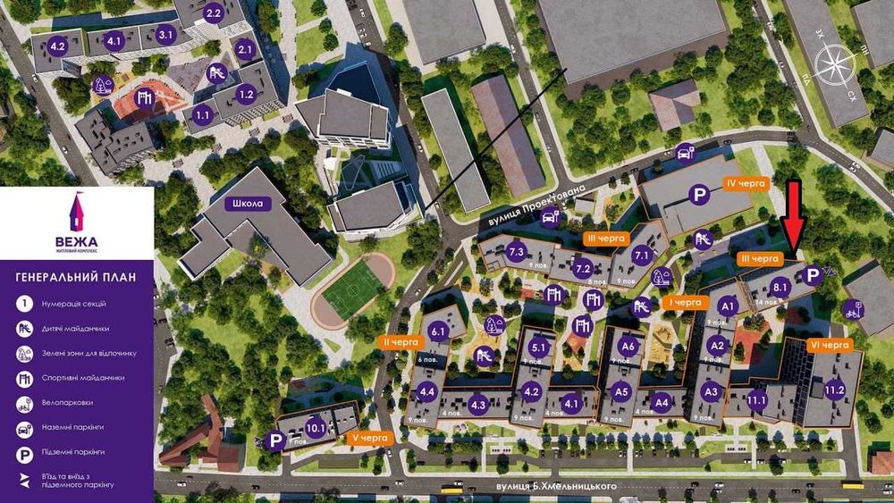 Сучасний ЖК з відпочинковими зонами, дитячими та спортивними майданчиками, зонами відпочинку, пішою територією без авто, підземним паркінгом. На території ЖК власні школи та дитячі садочки.