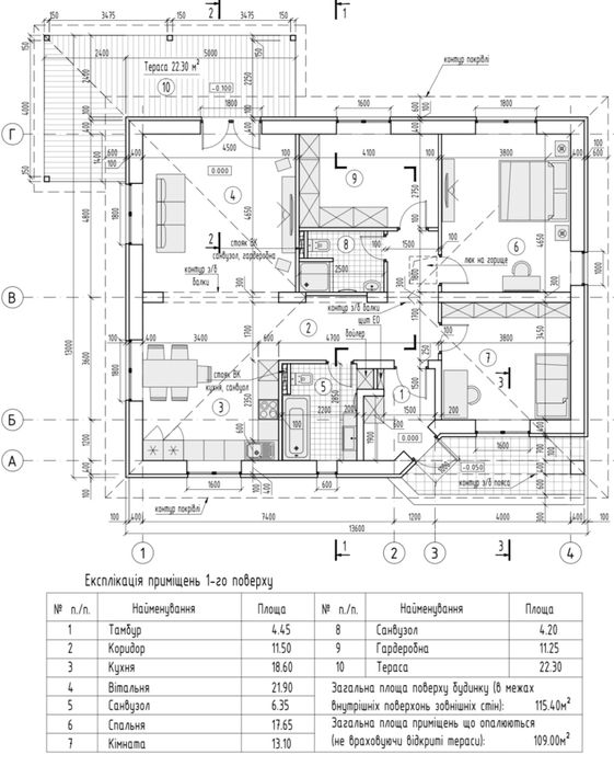 • Площа: 110 м² + 2 тераси