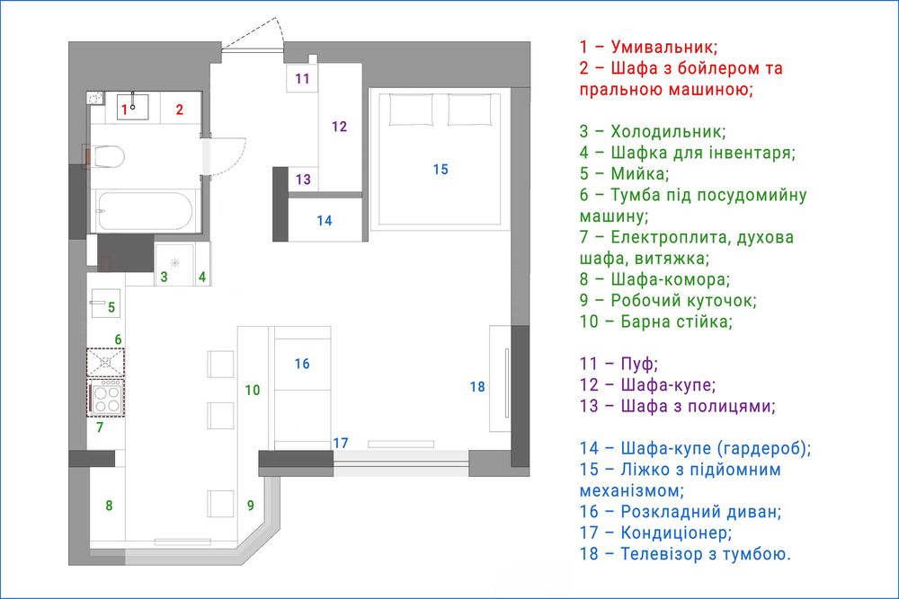 Загальна площа квартири – 42 кв.м. Висота стелі – 2.7 м.