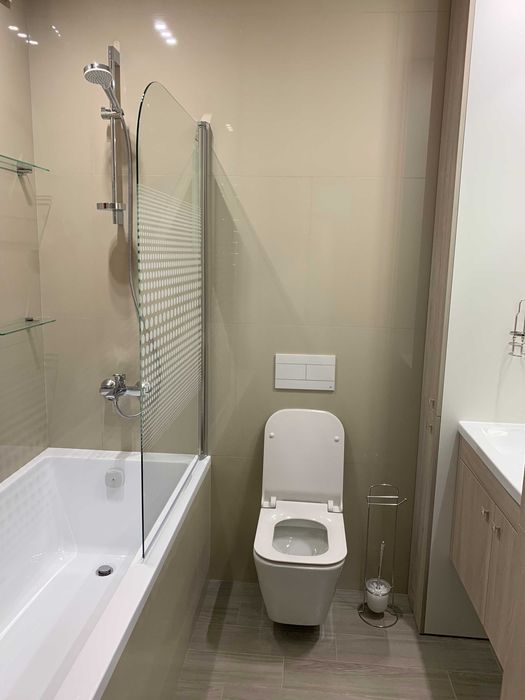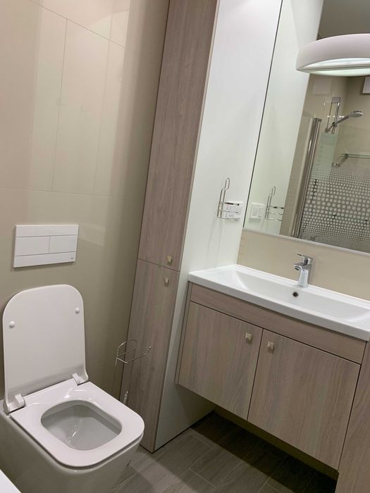 Під час ремонту квартири використовувались виключно якісні оздоблювальні матеріали. Все технічне обладнання від відомих та перевірених виробників. Встановлена вся необхідна побутова техніка від провідних світових брендів: бойлер (80 л), пральна машина, варочна поверхня та духова шафа, витяжка, мікрохвильова піч, холодильник, кондиціонер (інверторний), пилосос, телевізор. Тепла підлога на кухні. Фільтри для води. Зручні меблі, ортопедичні матраци. Проведено кабельне телебачення та Інтернет. Встановлений домофон та охоронна сигналізація.