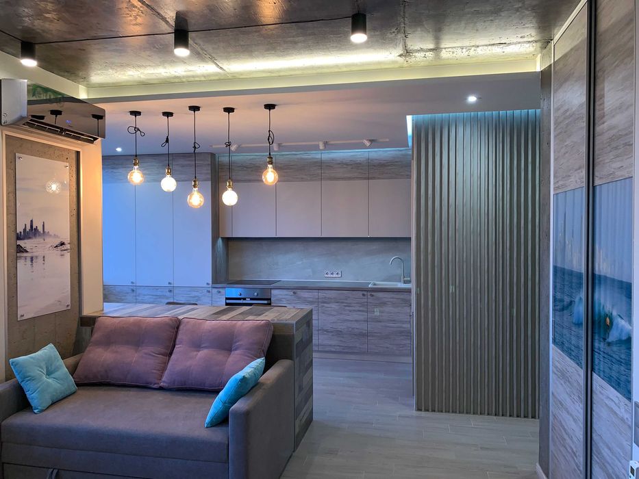 1-кімнатна квартира з вишуканим дизайном у сучасному стилі з панорамним видом на місто. 15 поверх сучасного 16-поверхового будинку. Презентабельний хол, консьєрж. Ідеально підходить як для власного проживання, так і під орендний бізнес.