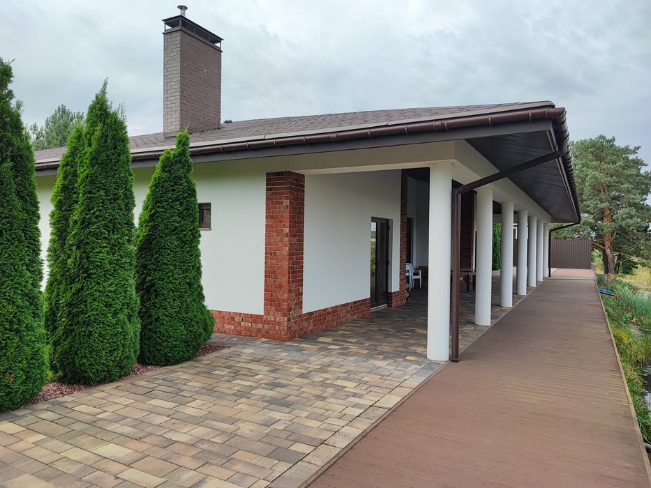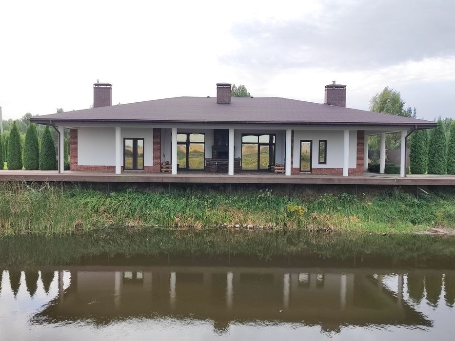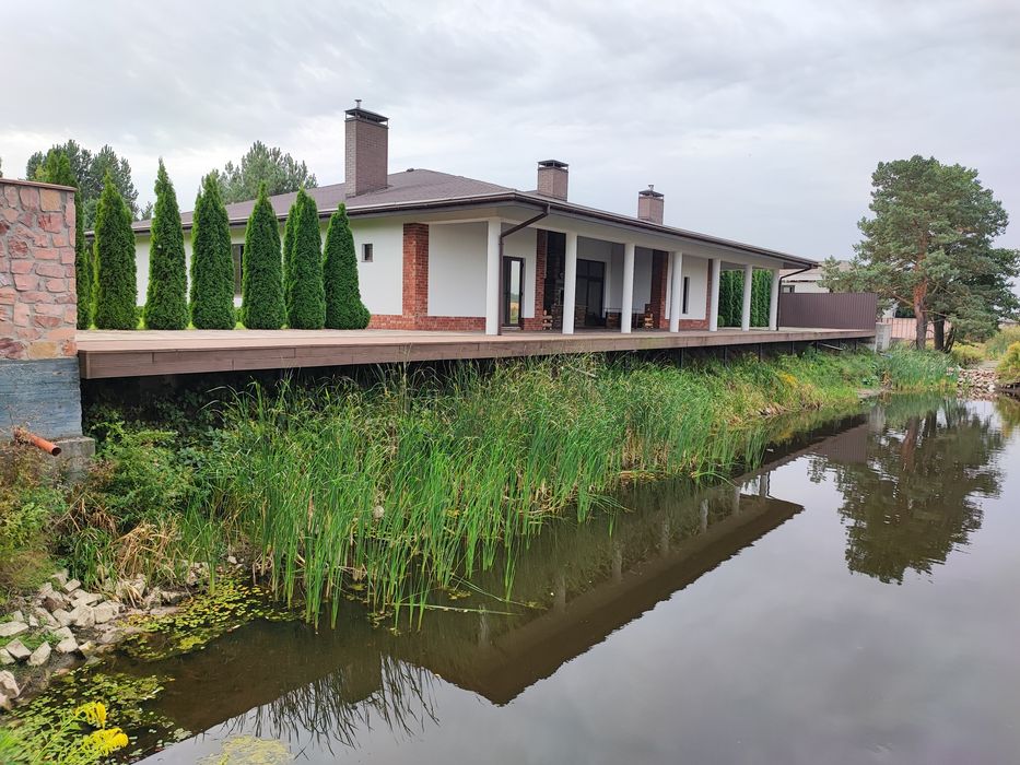 Будинок з озером біля лісу і річки с.Дзвінкове.; Продам свій власний будинок (без внутрішнього ремонту все зроблено під чистове оздоблення, підлоги залиті, стіни пощекатурені, встановлені гранітні підвіконня, зроблено розведення електропроводки), будували для себе з дуже якісних матеріалів фото та відео будівництва з самого нуля. Є газофікація, електрика своя свердловина, підлоги з підігрівом. Індивідуальний проект, будинок з великою терасою і виходом на своє озеро, трохи далі в 20метрах річка Ірпінь, два каміни один всередині будинку і один зовні, територія облагороджена, встановлена система автополива. .Доп.питання в тел.режимі...