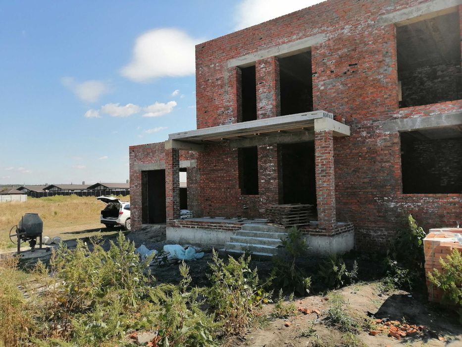 Київський; Дом двухэтажный на этапе строительства; Продается двухэтажный дом из красного кирпича, на этапе строительства, есть комната ниже первого этажа (укрытие) , электричество подведено, участок ровный 10 соток, Крыша - мембрана с утеплителем. Гараж на две машины. Большая Даниловка Ландау 10.