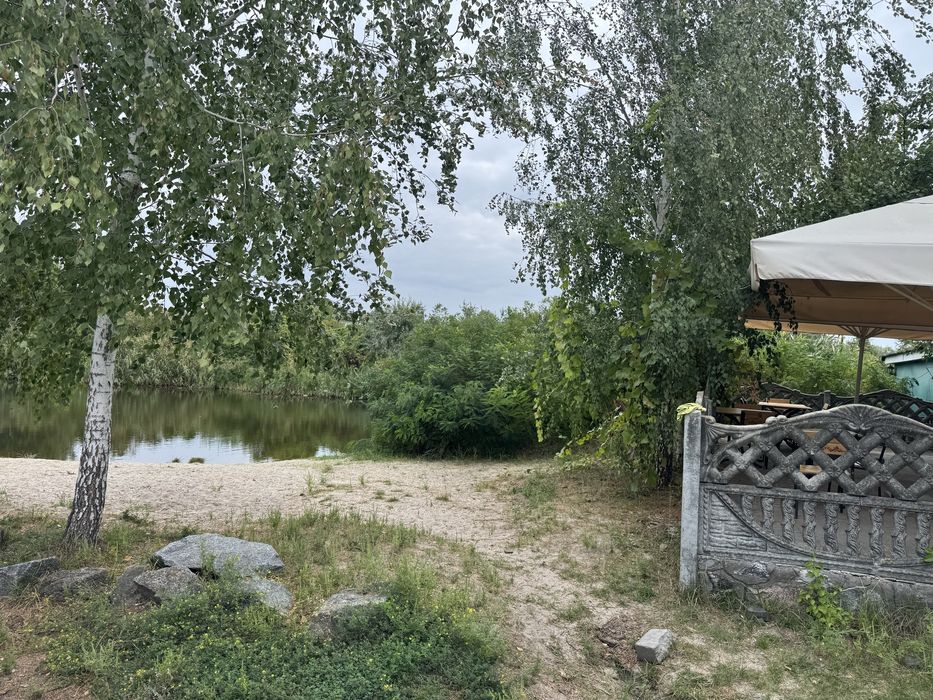 Продам дачу на садовому товаристві Коноплянка; Продається дачна дільниця площею 15 соток на березі затоки р. Дніпро. На дільниці є двоповерховий будинок з гаражем, басейн і також є готовий бізнес магазин з площадкою для відпочинку і двоповерхова баня біля гарного піщаного пляжу. Також є сад і город.Ділянка приватизована. В будинку є опалення електричне та твердопаливне, також є можливість підключити газ. Дачною дільницею треба займатися та місцями потребує ремонту.