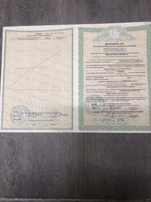 Продаж будинку та земельноі ділянки; Продається будинок в гірській місцевості за адресою: Мукачівський р-н, с. Грабово, вул. без назви, буд. 65 та дві земельні ділянки 0,25 га для будівництва і обслуговування житлового будинку та 0,25 га для ведення особистого селянського господарства, ділянки обʼєднані. Додаткова інформація за телефоном 06******47; кадастровий номер: 2122786603:00:001:0065; 2122786603:00:001:1065