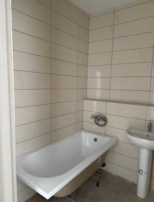 В санузле облицовка плиткой и сантех приборы - ванна, умывальник, унитаз, бойлер.