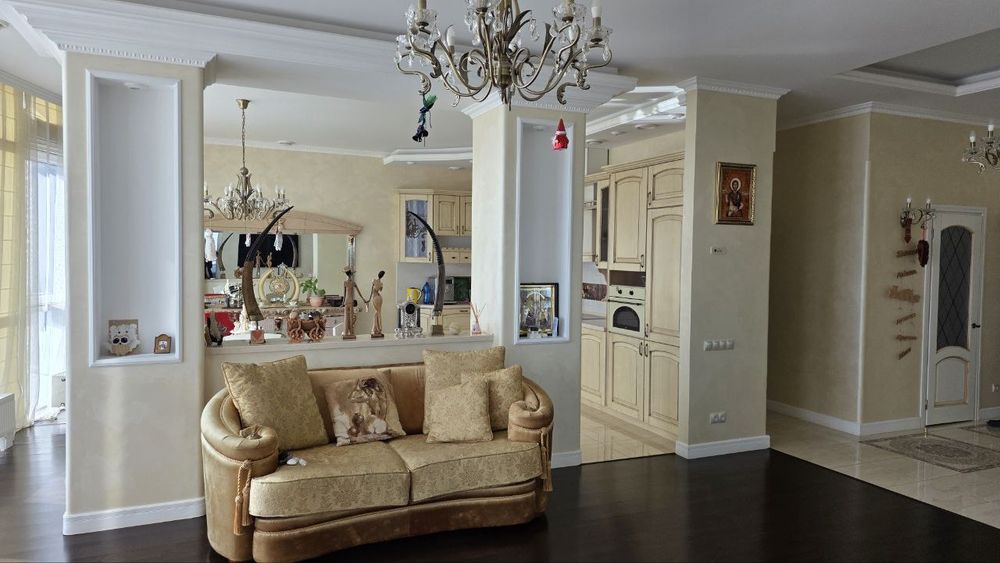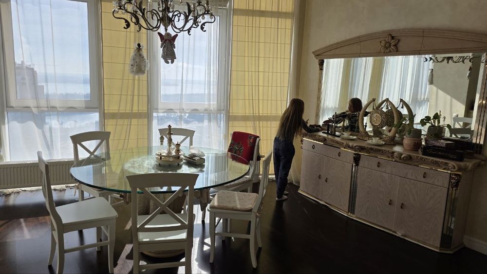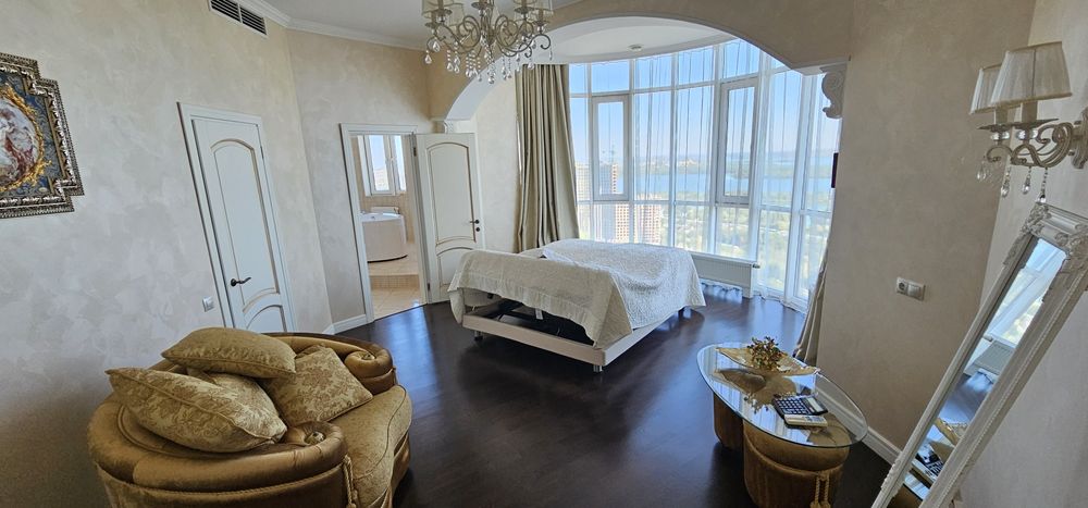 Авторський ремонт в класичному стилі. Неймовірні види з усіх вікон. Немає суміжних вікон з сусідами. Одна спальня, кухня-вітальня розмежена декоративною стіною. Два санвузли: гостьовий з душевою, та з ванною і неймовірним видом із вікна на дніпровську центральну алею з пам'ятником Слави, річку Дніпро. Дві гардеробні кімнати: при вході та в спальні + пральна кімната. Висота стелі 3м30см - фантастичний простір. Ремонту 8 років, але в ній практично ніхто не мешкав. Стан ремонту близький до ідеалу, дітей і домашніх тварин не було.