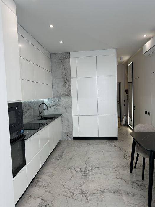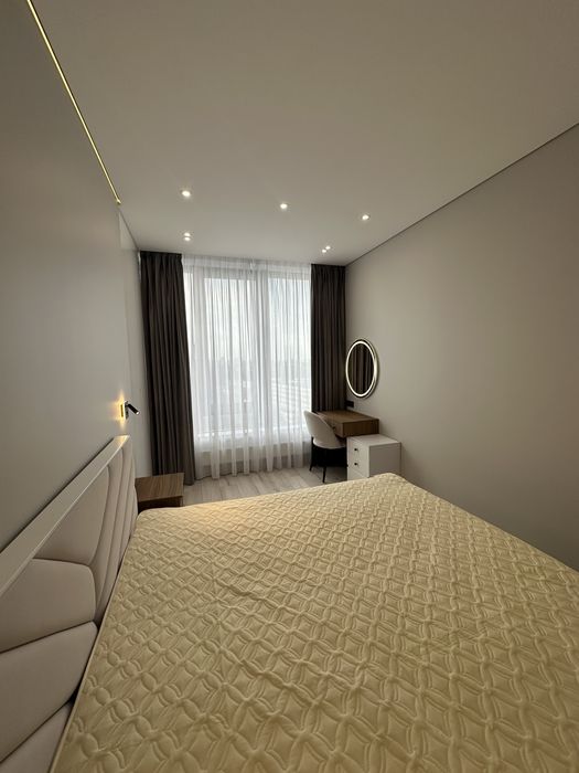 В квартирі виконаний якісний ремонт по авторському проекту. Ремонт робився для себе, але вимушений здавати. Висота стелі 3 метри. Панорамні вікна. Всі матеріали, сантехніка і побутова техніка від відомих брендів. Ліжко 1800*2000. Підігрів підлоги в санвузлі та в передпокої з управлінням по wi-fi. Два кондиціонери з управлінням по wi-fi.