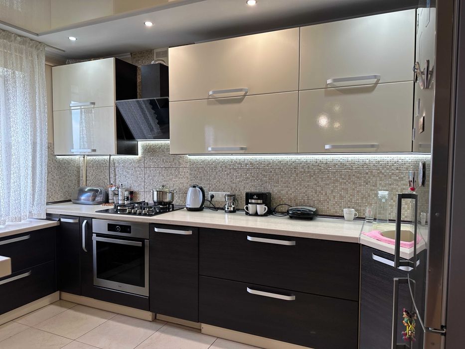 Кухня перероблена в студію, повністю укомплектована всіма необхідними якісними меблями та технікою.
