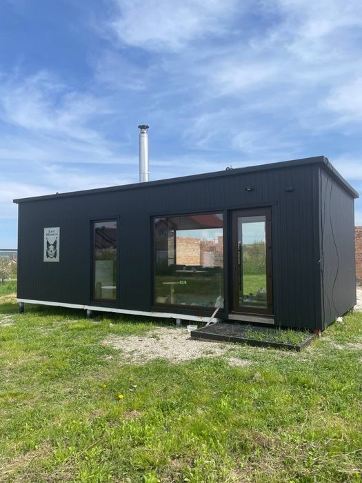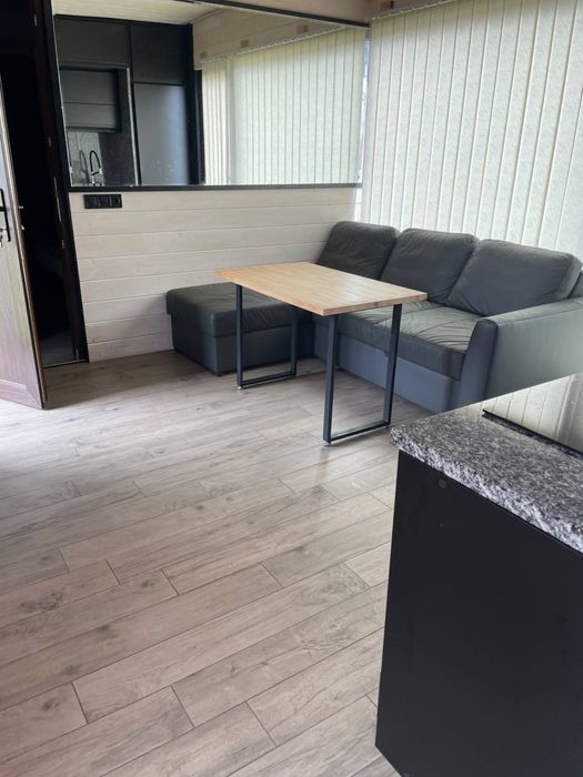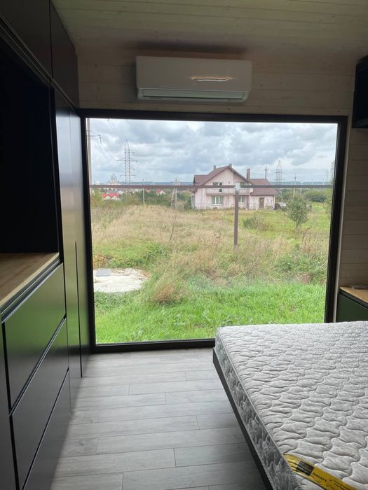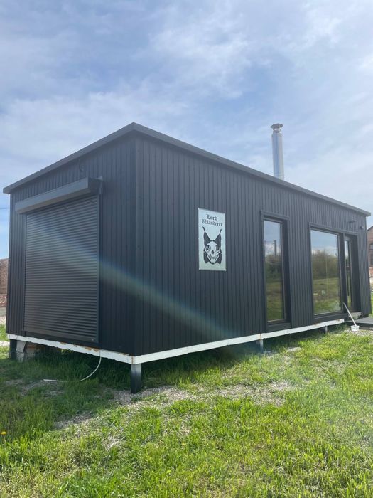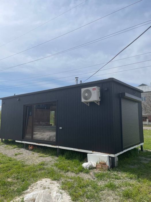 Переносний модульний будинок; Продам переносний модульний будинок для круглорічного проживання. Розмір 9x4. Повністю укомплектований для комфортного проживання. Тепла підлога по всій площі. Кондиціонер літо/зима, бойлер,камін на дровах, холодильник, духовка, варочна поверхня, автоматичне підняття та опущення жалюзі, пральна машинка.