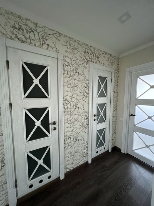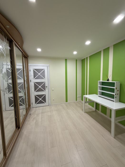 Спальня : дерев’яне ліжко 180 см, тумби, шафа- купе , верхні поверхи на пантографі ( опускаються вниз для комфорту використання) Шафи максимально продумані для ефективної організації простору.