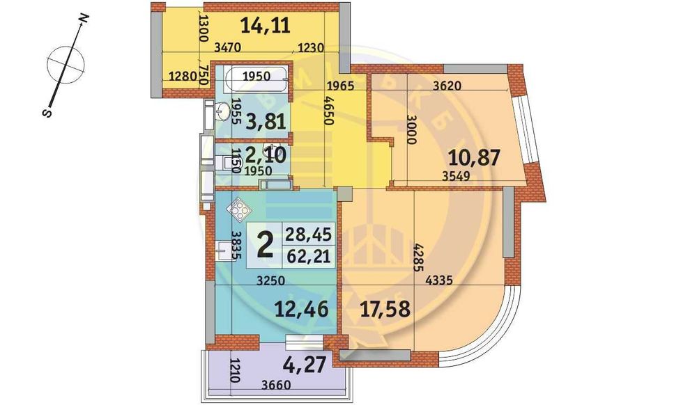 Площа 62,21 м2,
