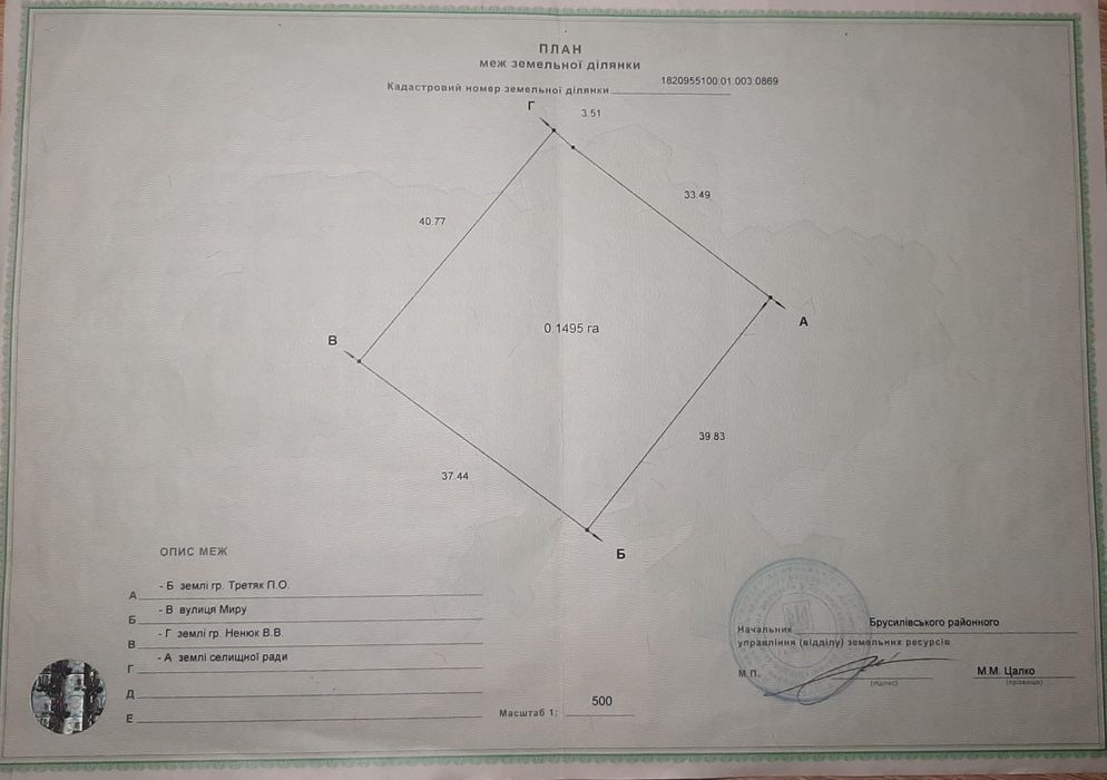 | Земельна ділянка: |