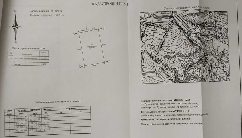 | Земельна ділянка: |