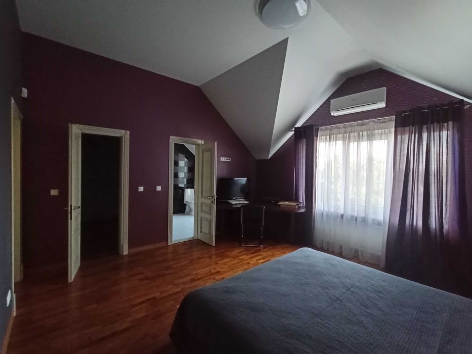 Кухня-вітальня, кабінет, 4 спальні кімнати, дві з них зі своїми санвузлами, два гаража, сауна з кімнатою відпочинку і окремим санвузлом, постирочна, спортзал з тенісним столом, на території крита альтанка з барбекю, тераса над водою.