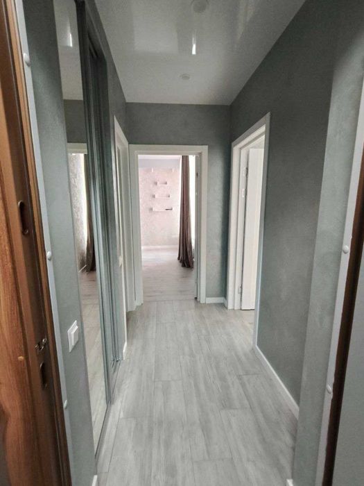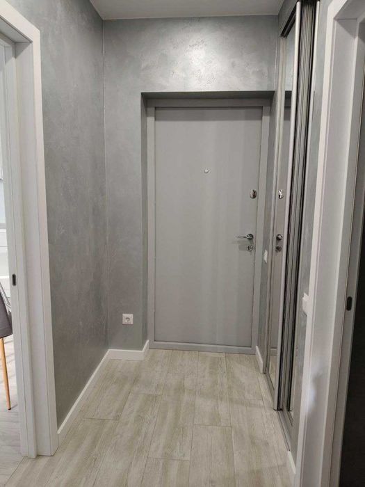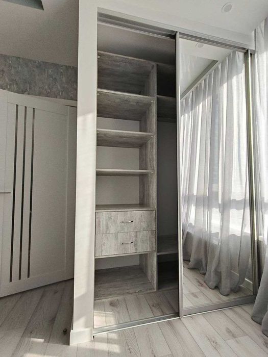В квартирі є всі необхідні меблі, дві вмонтовані шафи-купе, просторий розкладний диван, двоспальне ліжко