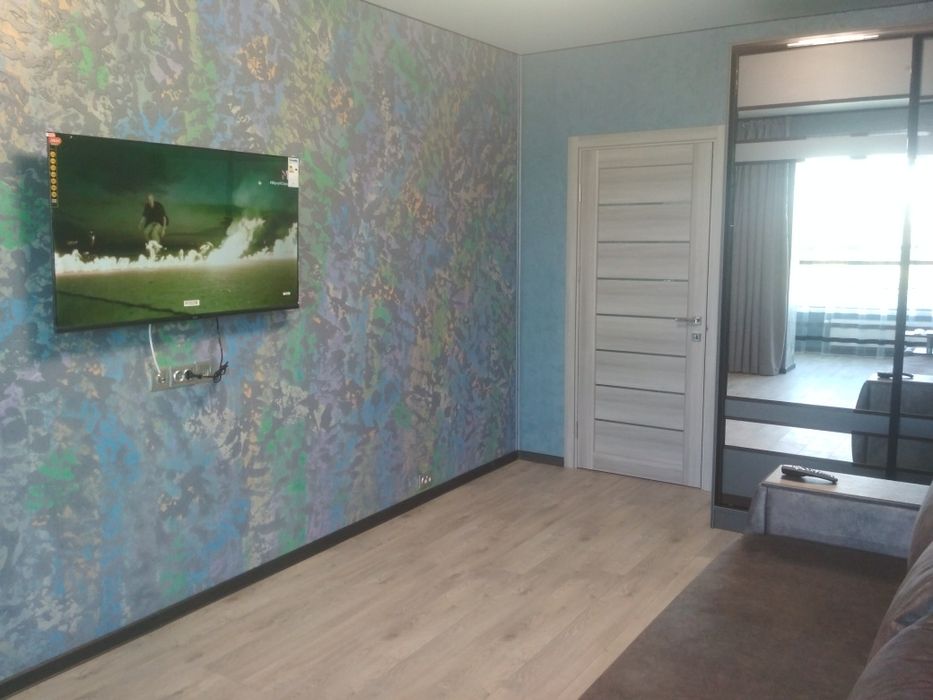 Ізольована вітальня з розкладним диваном, шафою, телевізором та кондиціонером - вихід на великий балкон.