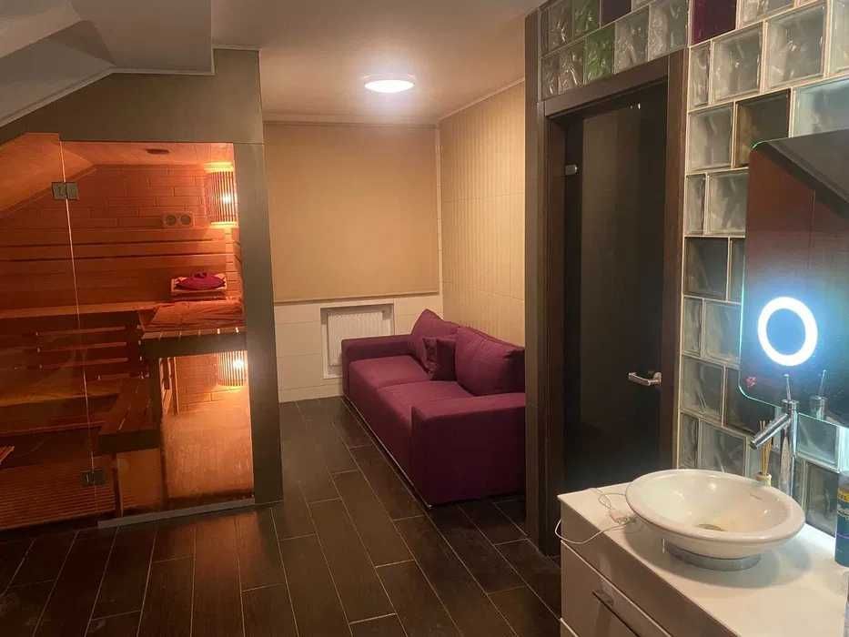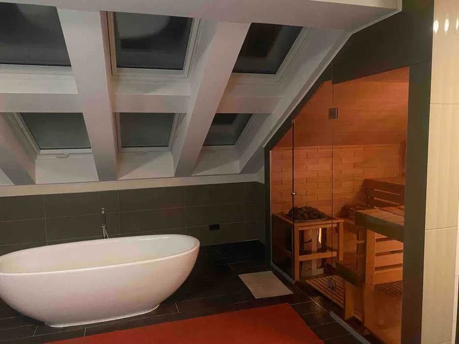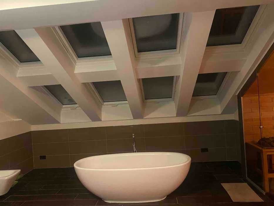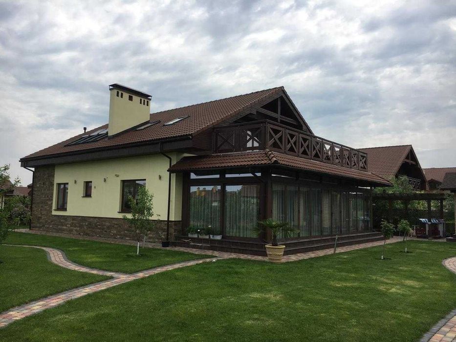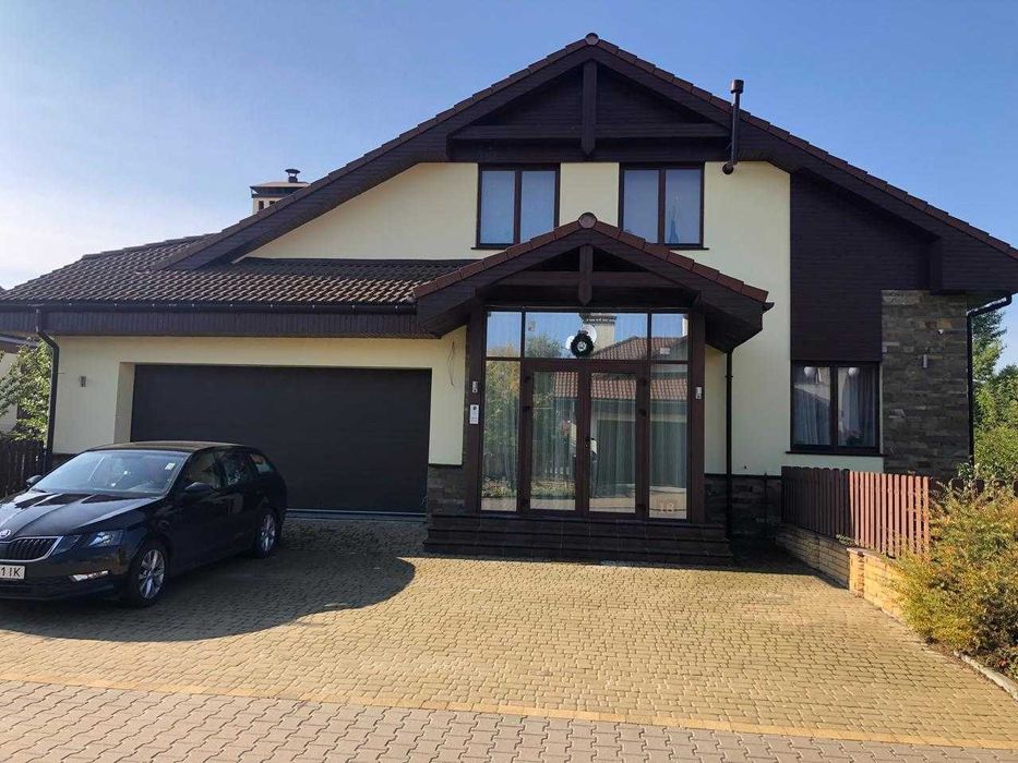 -350 м² з гаражем на два авто (ворота автоматичні) та затишною великою зимовою террасою з чудовим видом на озеро та ліс, яка розташована на південь. Південна тераса є бажаною для багатьох власників, і є вагомі причини для цього: взимку південна тераса отримує максимум сонячних променів. Основною перевагою південної тераси є неперервне освітлення впродовж усього дня, що робить її ідеальним місцем для сніданків та ланчів. Виконано новий, якісний ремонт в теплих тонах з можливістю керувати світлом, опаленням, кондиціюванням, вентиляцією та музикою окремо в кожній кімнаті через систему розумний дім JUNG. Датчики руху у всіх загальних кімнатах.