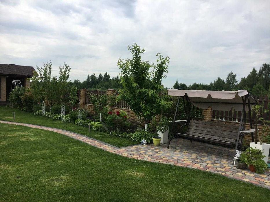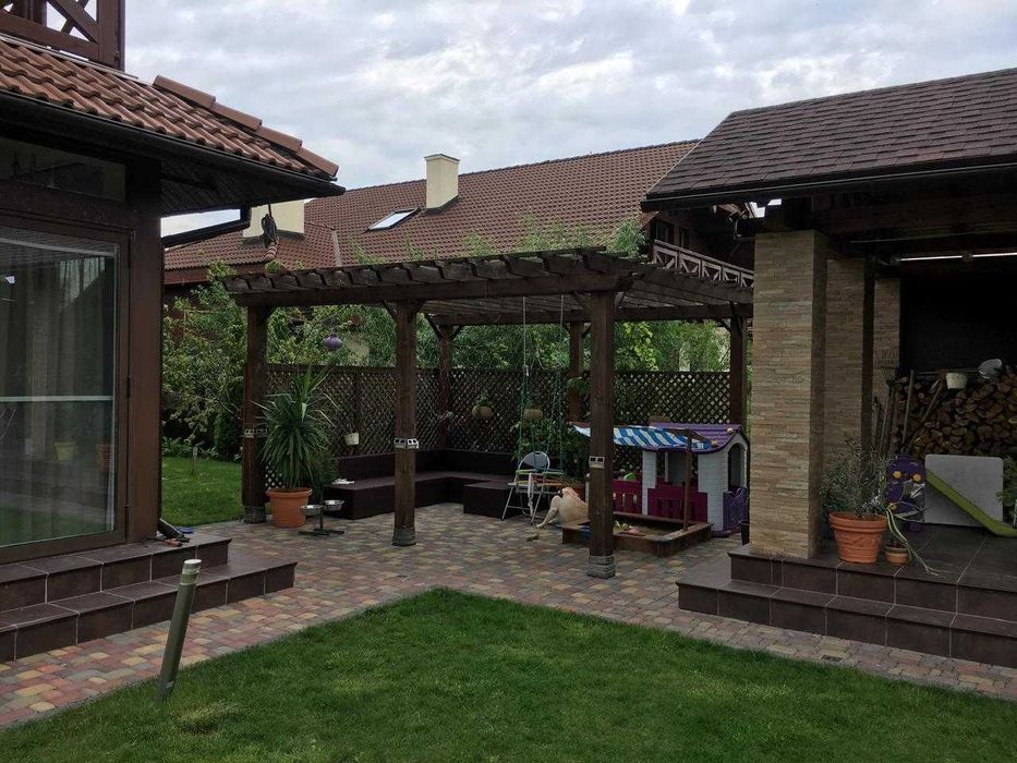 -на ділянці є пергола, барбекю з зоною мангала, садові меблі, качеля з навісом.